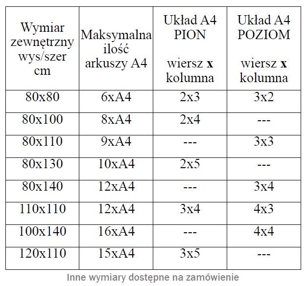 pomieścić wskazaną ilość arkuszy A4. Do wyboru: