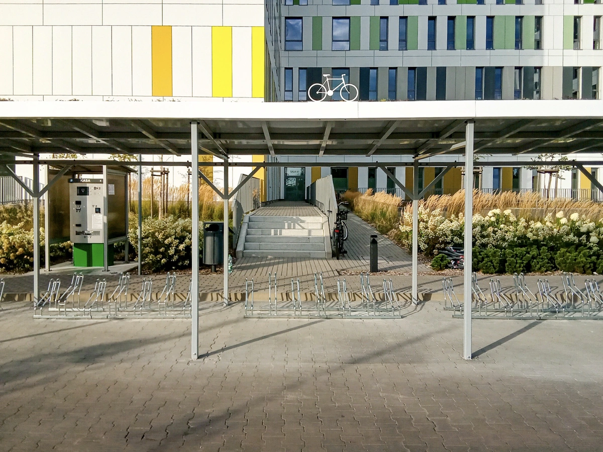 New bike shelter at the Poznań hospital on Wrzoska street!